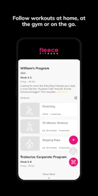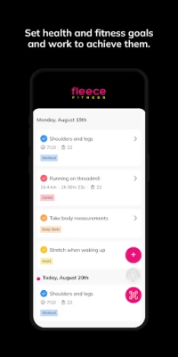 With the Fleece Fitness App, you can start tracking your workouts and meals, measuring results, and achieving your fitness goals, all with the help of your coaches.