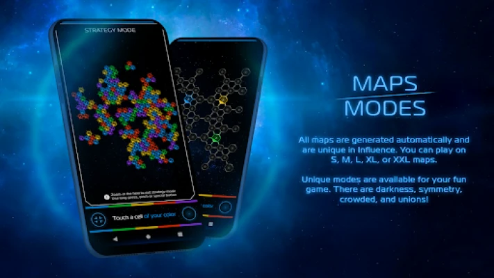 All maps are generated automatically and are unique in Influence. You can play on S, M, L, XL or XXL maps.