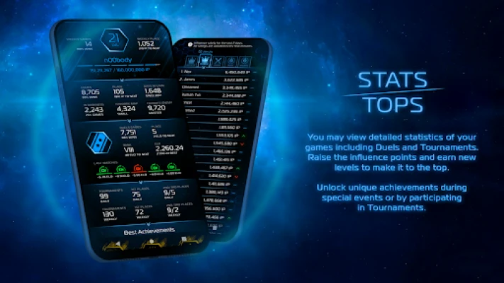 You may view detailed statistics of your games including Duels and Tournaments. Raise the influence points and earn new levels to make it to the top.