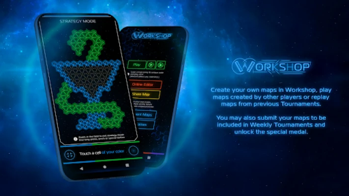 Create your own maps in Workshop, play maps created by other players ot replay maps from previous Tournaments.