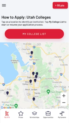 The purpose of the Keys to Success app is to help students unlock their future and connect them with scholarships, internships, and other career opportunities. As students are matched with opportunities within their identified career interests, students gain points for awesome rewards. Students can track their progress, navigate career pathways, receive push notifications, and use additional tools like College Planning Resources, ACT Prep, and FASFA Help. Additionally, Keys to Success is partnered with multiple universities, post-secondary educational institutions, and business sponsors to provide students with scholarship and career opportunities
