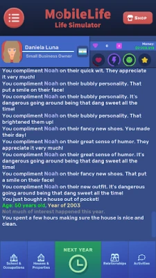 MobileLife is a text-based life simulator that allows players to experience different careers and lifestyles. Switch up your outfit, interact with friends and family members, and choose from a variety of professions and activities, from sports and entertainment to business and politics.
