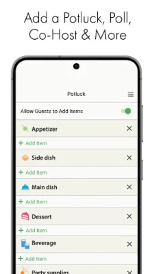 • Advanced features allow you to set up a Potluck List, add a Poll, add a Co-Host & more