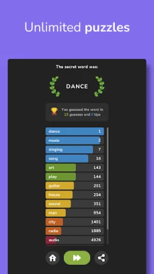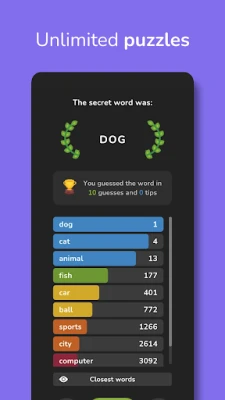 🤖 AI-Powered Word Sorting: Words have been analyzed across millions of texts to calculate precise contextual similarity. 📚 Exclusive Categories Mode: Challenge yourself within specific categories! 🔄 Unlimited Puzzles: Endless levels with no daily limits. 💡 Stuck? Use Hints: Helpful tips available to keep the game moving.