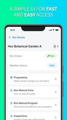 - View the status of your SmartLine Controllers - View geographic location of your SmartLine Controllers - Run programs remotely - Run zones remotely - Send Global Commands to multiple controllers simultaneously